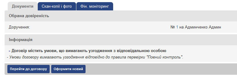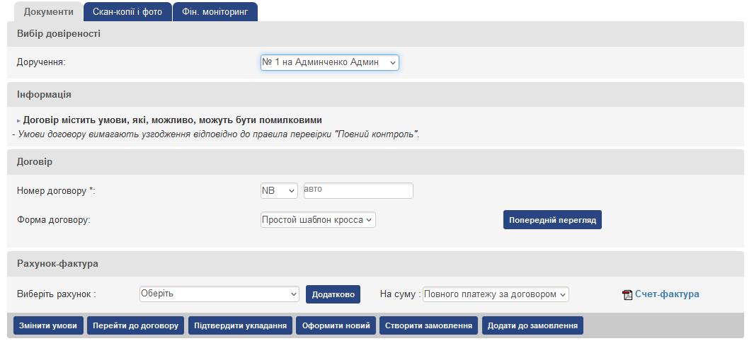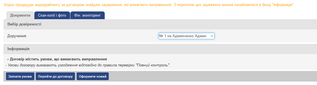 - Попередження – зауваження за правилом з таким порядком роботи будуть інформативно відображатися, але укладення договору буде можливо