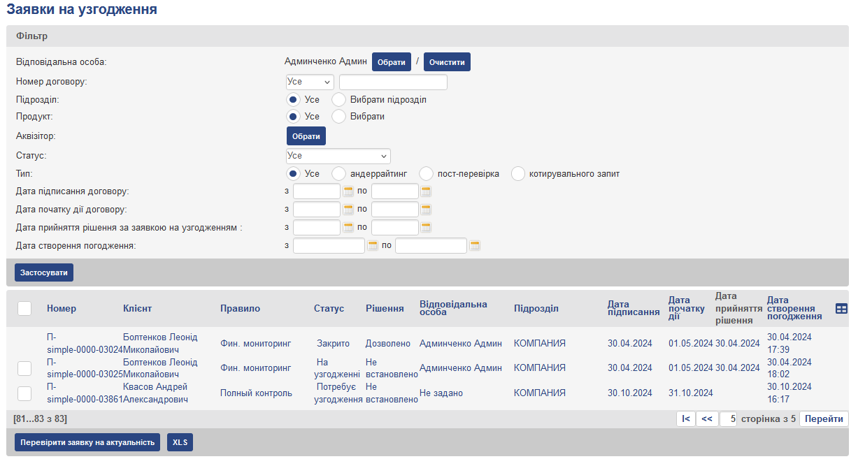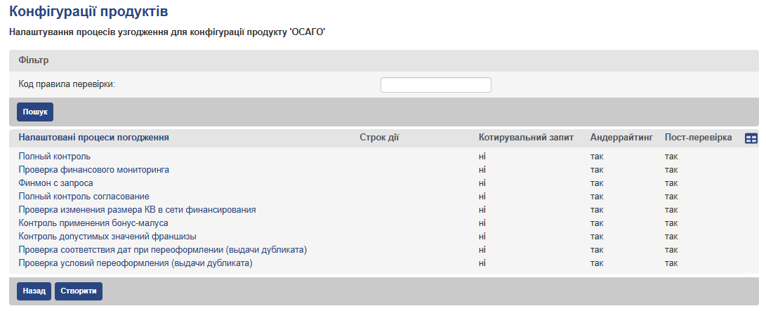 Для здійснення процесу узгодження договорів (андеррайтинг, пост-перевірка) необхідно виконати попередні налаштування правил перевірки договорів (докладніше нижче).