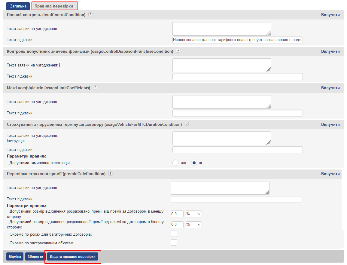 - Правила, специфічні для даної конфігурації продукту (наприклад, “Нестандартне кількість застрахованих ТЗ” для ОСАГО)